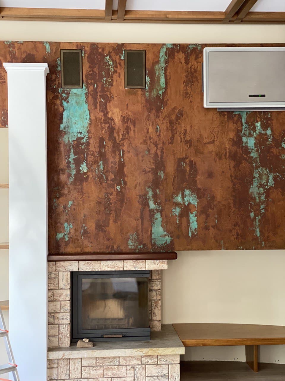 - Spray CORROSIA ACTIVATOR immediately after applying the RUST base. Spread it evenly with a stainless steel plastering trowel. For a more intense effect, re-spray the activator after 30-40 minutes. Allow the surface to dry completely (48 hours).