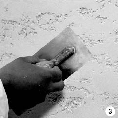 After 10-15 minutes (after stabilization of moisture) begin to smooth the material to compact, seal and level the surface with a stainless steel plastering trowel (Fig. 3). Once the surface begins to dry up it is necessary to continue treating the surface using a plastic plastering trowel to avoid blackening of the surface (fig. 4).