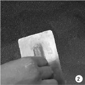 Apply the material to the surface in 1 layer using any convenient paint tool: a stainless steel plastering trowel, a brush or a roller, depending on the desired effect and texture (Fig. 2).