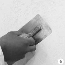 It is also possible to apply material in one layer with subsequent processing with a plastic plastering trowel to give the original pattern (RIO technique) (fig. 4).