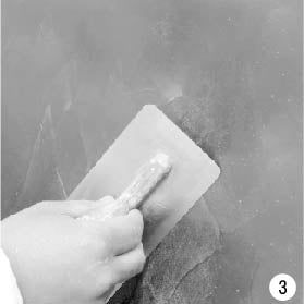 Mix the selected bases in one container and stir the product thoroughly. Apply the first layer of material using a spatula or a stainless steel plastering trowel by spreading the product evenly over the entire surface (fig. 2).