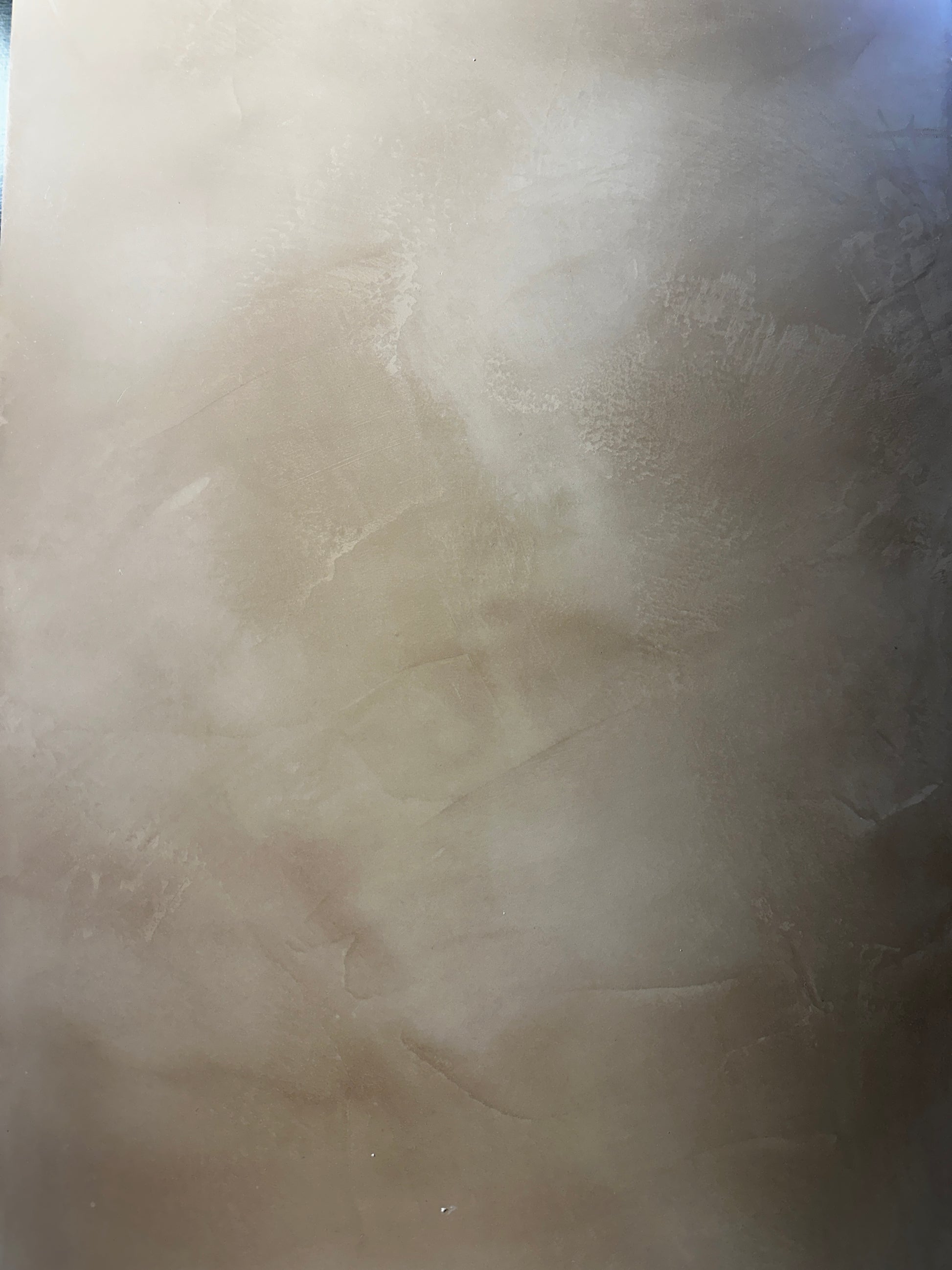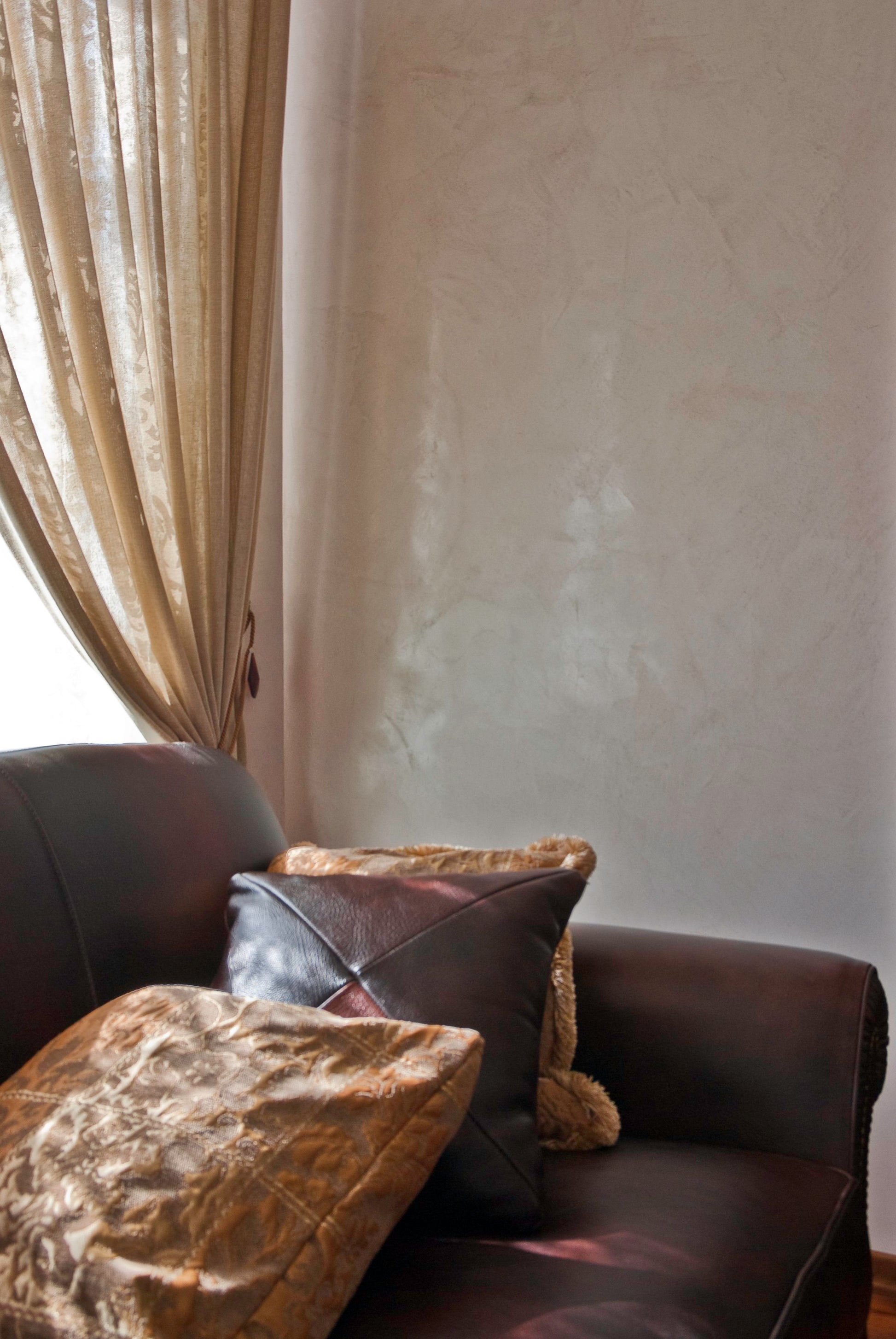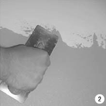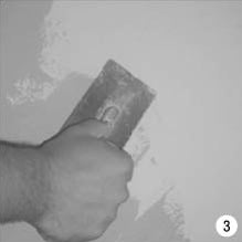 To obtain a more expressive design small flaws are allowed. The surface must be treated with a sandpaper after the complete drying (4-6 hours). Apply the second layer by making alternating strokes in different directions. It is also possible to apply the 2nd layer with a brush or a stainless steel spatula or plastering trowel and using a “stippling” method (fig. 3). Then polish the surface after 15-20 minutes by making multi-directional movements.