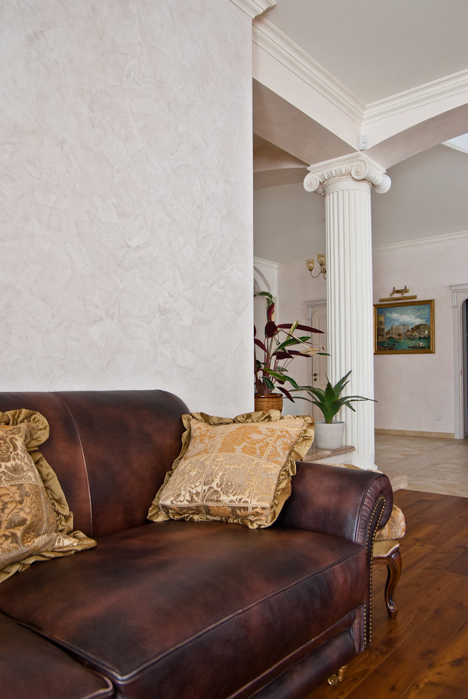 Apply QUARTZ PRIMER or DECOR PRIMER to the prepared surface (fig. 1). MARMORINO STYLE should be applied on a perfectly prepared surface Add the selected dye or use computer tinting system and mix the material thoroughly before applying. The first layer must be applied with a stainless steel spatula or plastering trowel with creating the original pattern of the future coating at the same time (fig. 2).