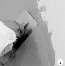 Apply the second layer of MIRAGE INTENSE using a plastic or stainless steel plastering trowel to create an original pattern after the complete drying (4-6 hours) by passing the tool in different directions to obtain different textures and reliefs (fig. 3). Smooth the surface by making multi-directional movements using a stainless steel plastering trowel after 10-15 minutes. That will reinforce the gleam and velvety effect. The resulting coating will sparkle beautifully in different directions of light after drying.