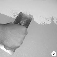 Apply QUARTZ PRIMER or D-17 ELF™ primer to the prepared surface (fig. 1). Wait until it’s completely dry. Apply 1st layer of TRAVERTINO STYLE with a stainless steel spatula spreading the product evenly over the entire surface by the grain size (fig. 2). After the first layer has completely dried (8-12 hours), apply a second layer of material in the same way.