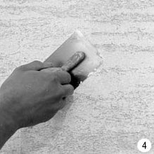 When the second layer dries slightly (15-20 minutes), scratch it with a narrow metal spatula, preferably in the horizontal direction, in order to imitate travertine veins (fig. 3). Glaze the surface using stainless steel spatula before the full drying (fig. 4). Before applying the decorative layer, it is recommended to prime the surface with D-14 ELF ™ primer. This will facilitate the application of the topcoat and protect against the emergence of docking spots.